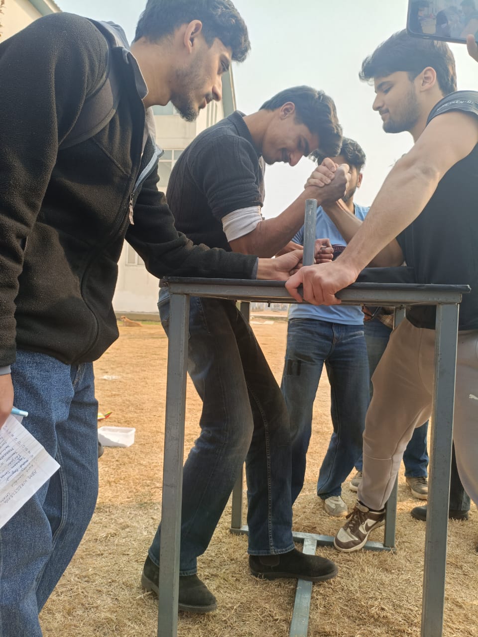The Sports Division, Institute of Technology (IOT) Zakura, successfully organized the first-ever Arm Wrestling Championship at the campus, with more than twenty students—both boys and girls—from various departments participating in the event. The championship witnessed spirited competition across multiple categories, reflecting remarkable strength, skill, and sportsmanship.